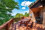 The view!!!! The hot tub, deck, picnic tables.