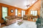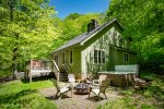 Step into your own sanctuary of tranquility, where modern amenities blend seamlessly with rustic charm. Experience ultimate relaxation with whole house air conditioning, a private fire pit, hot tub, and a welcoming gas fireplace.