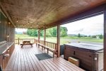 It was perfect for our needs. The dining table was perfect for a large gathering. Bedrooms and bathrooms were ample and towels were plentiful. The hot tub was a wonderful feature after a hiking trek. The available appliances and housewares made food prep very convenient because we prepared our meals ourselves. The small airstrip behind the property created a "bonus" entertainment value whenever there was activity.