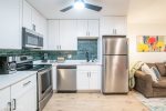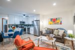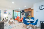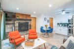 Welcome to your cozy mountain retreat! This freshly updated (Summer 2025) one-bedroom, one-bathroom first-floor condo offers a light and bright atmosphere with playful pops of color throughout. Designed with comfort and convenience in mind, the open-concept living area features a wood-burning fireplace and sleep sofa, allowing for up to four guests to enjoy this charming space.