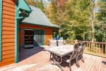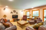Over 5,000 square feet and boasting four large bedrooms, four full baths, three separate living spaces and beds for 12 guests, the cabin is perfectly set up to bring multiple families together while allowing each their own private space. Kids will love exploring all the hidden nooks and crannies, including the hidden entrance to the "Cubby Hole" - the perfect cozy spot to make their own.