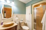 Primary bath with shower/tub combo (note that whirlpool jets are not operational)