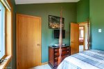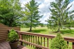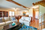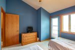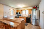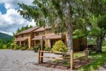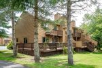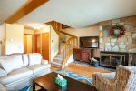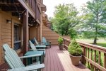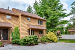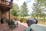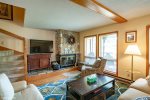 The living area is the perfect place to unwind after a day of adventure, with a wood-burning fireplace creating a cozy ambiance. Whip up delicious meals in the fully equipped kitchen, then dine al fresco on the large lower deck, complete with a gas grill for barbecues with loved ones. A small balcony off one of the bedrooms provides a serene spot to enjoy your morning coffee or soak in the mountain views.