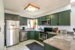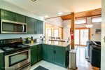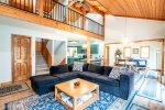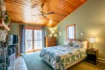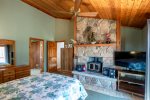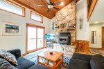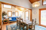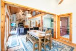 The open-concept kitchen, dining, and living area is ideal for gathering after a day of exploring. Enjoy meals around the table, unwind by the wood-burning fireplace, or relax in the outdoor hot tub under the stars. With air conditioning on the main floor, year-round comfort is guaranteed. Plus, this home is dog-friendly, so your furry friends are welcome to join the adventure too.